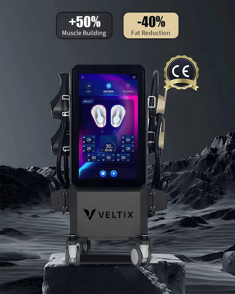 Το σύστημα Veltix HIFEM + RF συνδυάζει την τεχνολογία υψηλής έντασης ηλεκτρομαγνητικής ενέργειας (HIFEM) με ραδιοσυχνότητες (RF), προσφέροντας ισχυρά, μη επεμβατικά αποτελέσματα διαμόρφωσης σώματος.